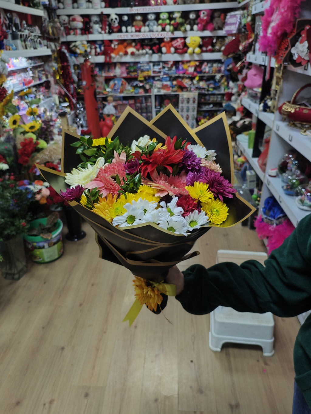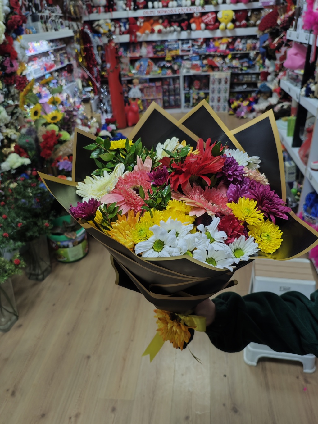 6.dal gerbera 3 dal kasım patı 2 dal papatya 6 dal şimşir 4 dal vigratüs 2 dal cipsi