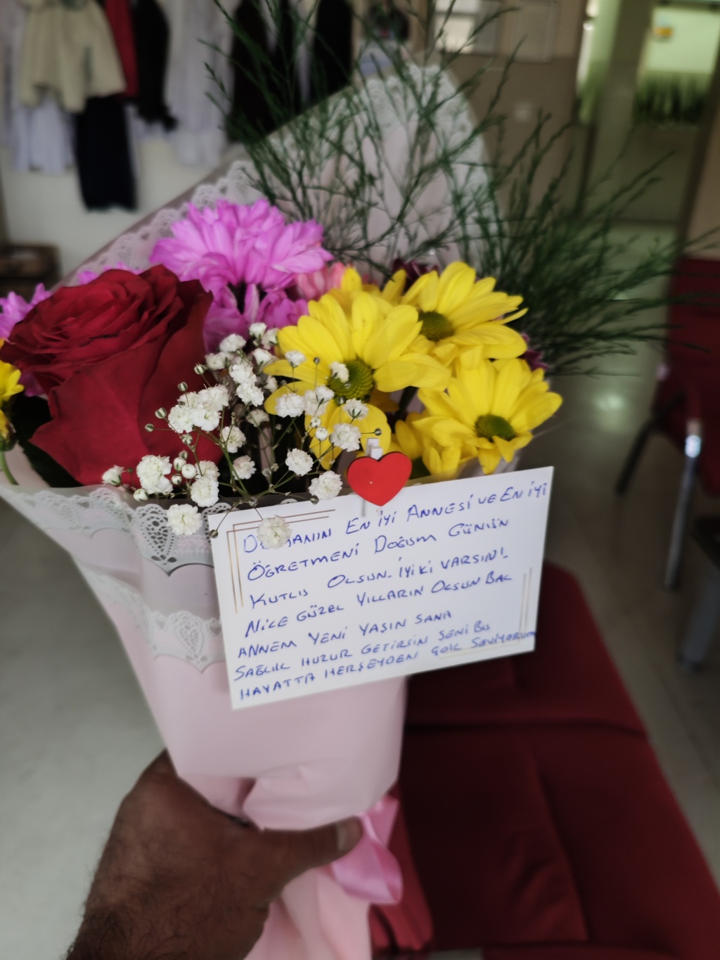 Canlı buket 1 adet kırmızı gül 3 adet 3 ayrı renk papatya 4 dal vigratüs 4 dal cipsi tatlı buket şık tasarım